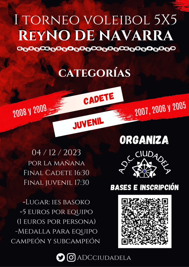 Bienvenidos/as al I Torneo de Voleibol 5×5 «Reino de Navarra» organizado por ADC Ciudadela